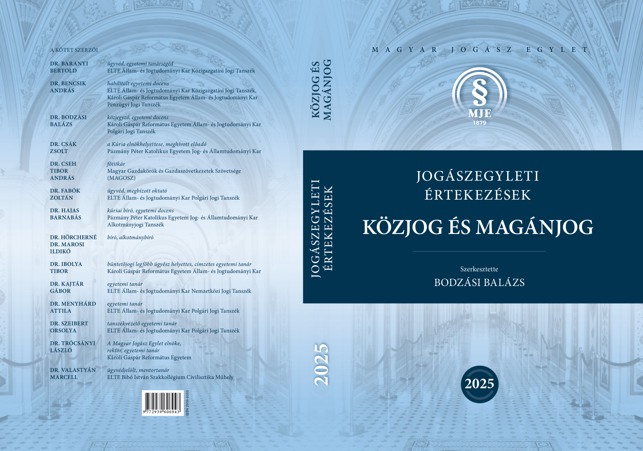A tanulmánykötet elektronikus formában a Magyar Jogász Egylet új honlapján, az alábbi linken érhető el: https://jogaszegylet.hu/tudastar/jogaszegyleti-ertekezesek/kozjog-es-maganjog-2025/